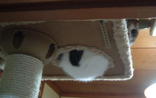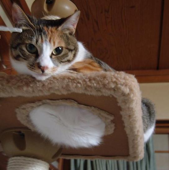 キャットタワー上ではいつもこんな感じなのですが