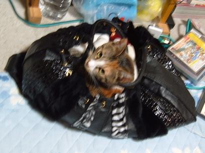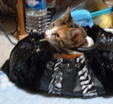 娘のバッグで寝ていました