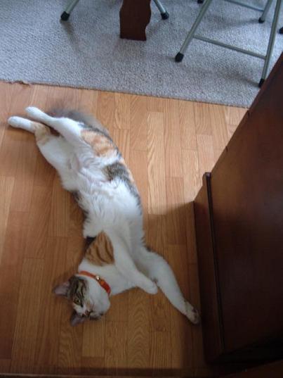 居間のFFストーブの裏でまったり
