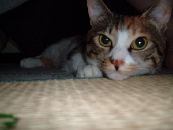 「夕食後、同居人旦那のひざ掛けの中にもぐりこみ、