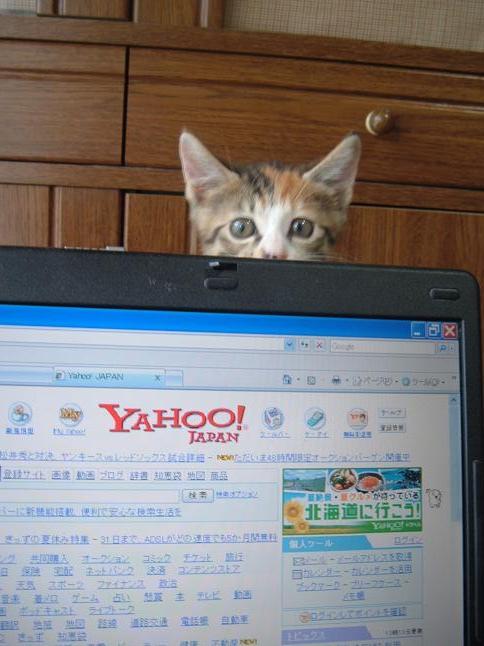 パソコンに乗ると怒られるので、
